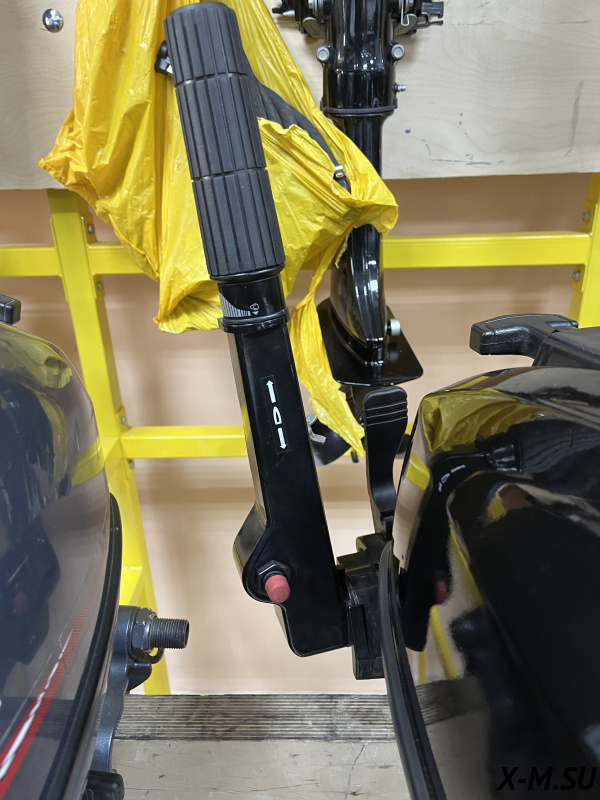 Переключение передач осуществляется рычагом в передней части мотора. положений у рычага три - вперед, нейтраль, назад. Кнопка остановки двигателя находится на румпеле, она снабжена предохранительной чекой экстренного выключения.