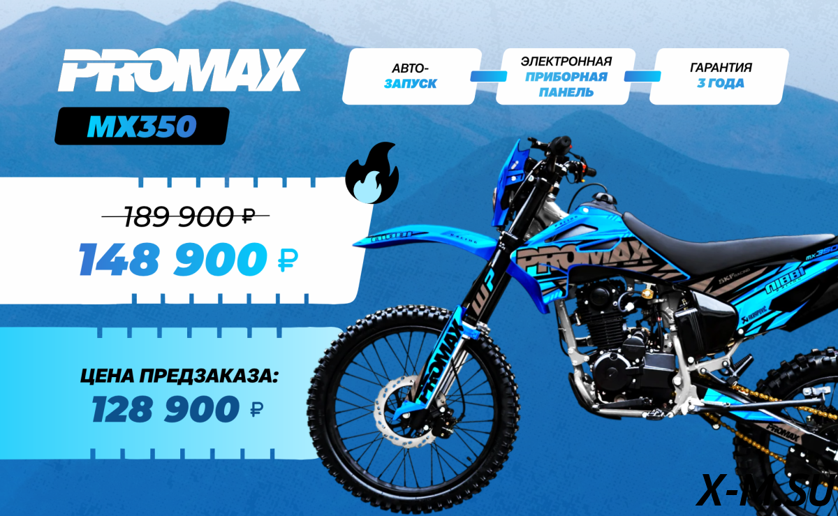 Привет всем! Недавно взяла себе PROMAX MX350 и хочу поделиться своими впечатлениями. Мотоцикл просто огонь! Классная тачка для тех, кто любит погонять по бездорожью. Двигатель мощный, 27 л.с. дают о себе знать. Особенно понравилась ручка газа от Nibbi Racing, реально удобно на подъёмах. Тормоза ANJIE работают на ура, даже при высоких температурах держат отлично. Подвеска WP — просто супер, настраивается легко и быстро. В общем, я довольна своей покупкой, PROMAX MX350 — это то, что надо для любителей экстрима. Всем советую, кто ищет надёжный и крутой мотоцикл! P.S. Цепь Choho реально не требует частого обслуживания, что тоже большой плюс.